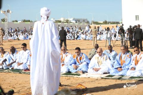 وأدى الصلاة إلى جانب الرئيس أعضاء الحكومة وأعضاء السلك الدبلوماسي في موريتانيا وجمع من المواطنين.