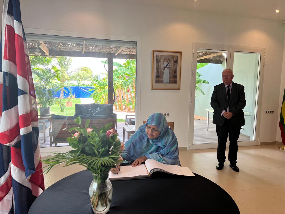 المعدن الإخباري- قدمت السيدة فاطمة عبد المالك رئيسة جهة نواكشوط زوال اليوم الجمعة بمقر السفارة لبريطانية بالعاصمة نواكشوط لصاحب السعادة السيد كولون ويلز سفير بريطانيا في بلادنا، تعازيها ومواساتها في رحيل الملكة إليزابيث الثانية ملكة المملكة المتحدة وإيرلندا الشمالية، معربة عن عميق أسفها لفقد العالم لأحد قادته البارزين ودعاة السل