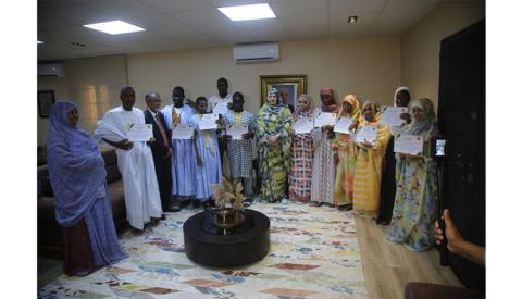 كرمت وزيرة العمل الاجتماعي والطفولة والأسرة، صفية بنت انتهاه، اليوم الثلاثاء بمباني الوزارة في نواكشوط، التلاميذ المتفوقين من فئتي البنات وذوي الإعاقة في المسابقات الوطنية.