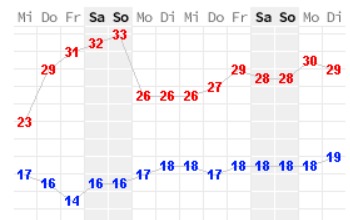 وهذه درجات الحرارة المتوقعة خلال هذه الفترة: