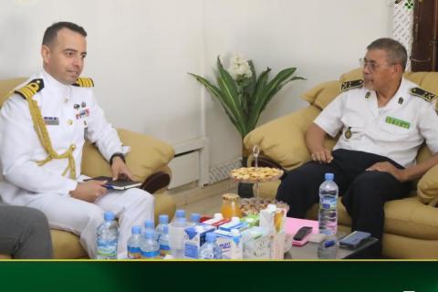 عقد اللواء أحمد السيد بنعوف؛ قائد أركان البحرية الوطنية، اليوم (الأربعاء)، لقاء في مكتبه بمقر القيادة، مع الملحق العسكري التركي لدى مورتانيا، والمقيم بالمملكة المغربية؛ العقيد البحري إركان جوكبولاك.