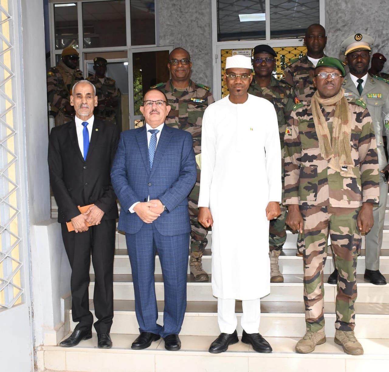 استقبل وزير الدفاع وشؤون المحاربين القدامى في مالي، الفريق أول ساديو كامارا، وفداً موريتانياً برئاسة الأمين العام لوزارة الدفاع الموريتانية المكلّفة بشؤون المتقاعدين وأبناء الشهداء، العقيد إسحاق عبد الله.