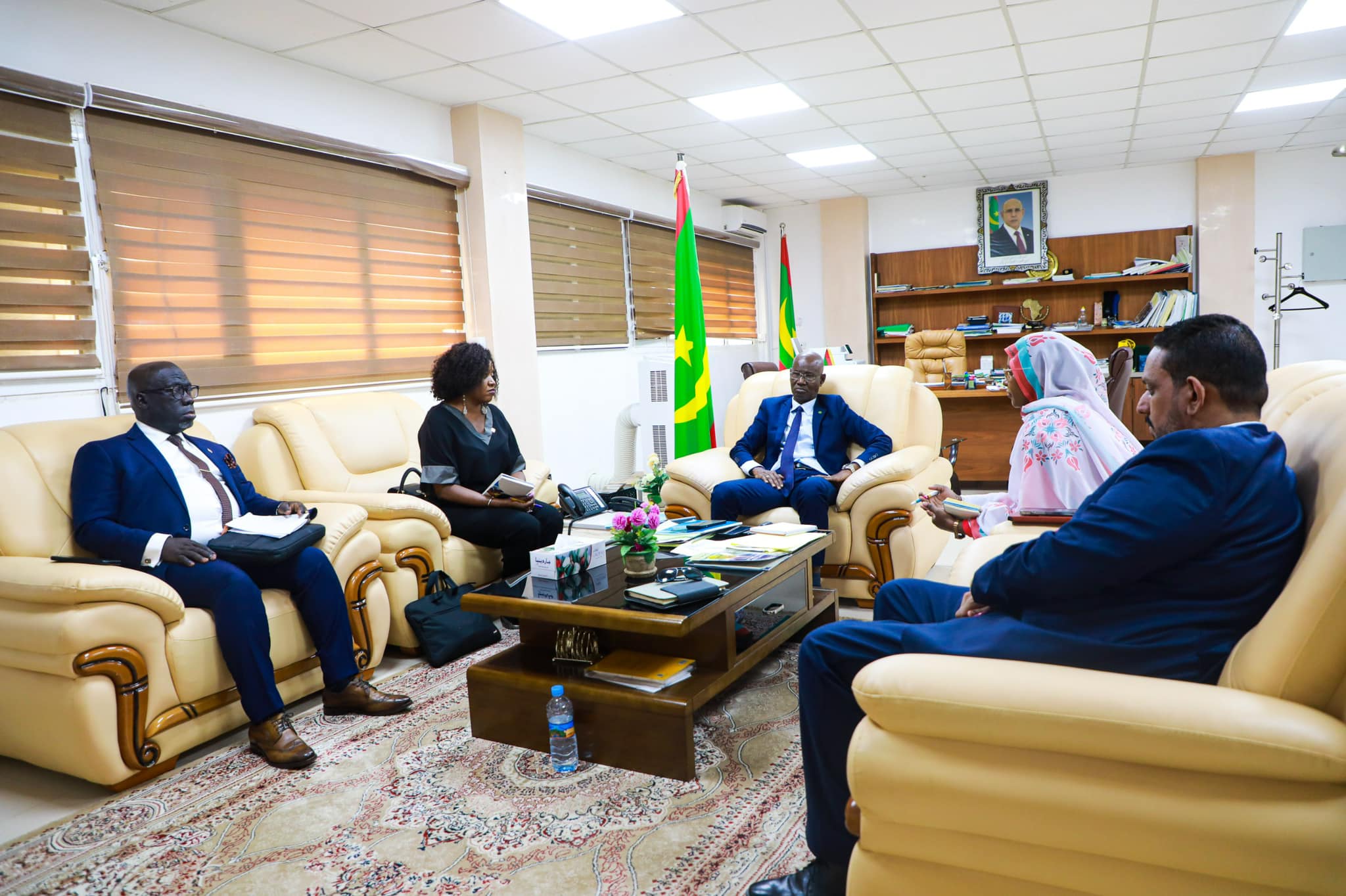 استقبال معالي وزير الاسكان السيد مامودو مامادو انيانغ  الثلاثاء، وفدا من الهيئة الإفريقية لوكالات تنفيذ الأشغال ذات النفع العام (AFRICATIP)، يضم كل من الأمين الدائمة للهيئة السيدة آستو با انجاي، ومسؤول الخزينة للهيئة المدير العام لوكالة گاماوورك GAMAWROKS الغامبية السيد عمر گي.