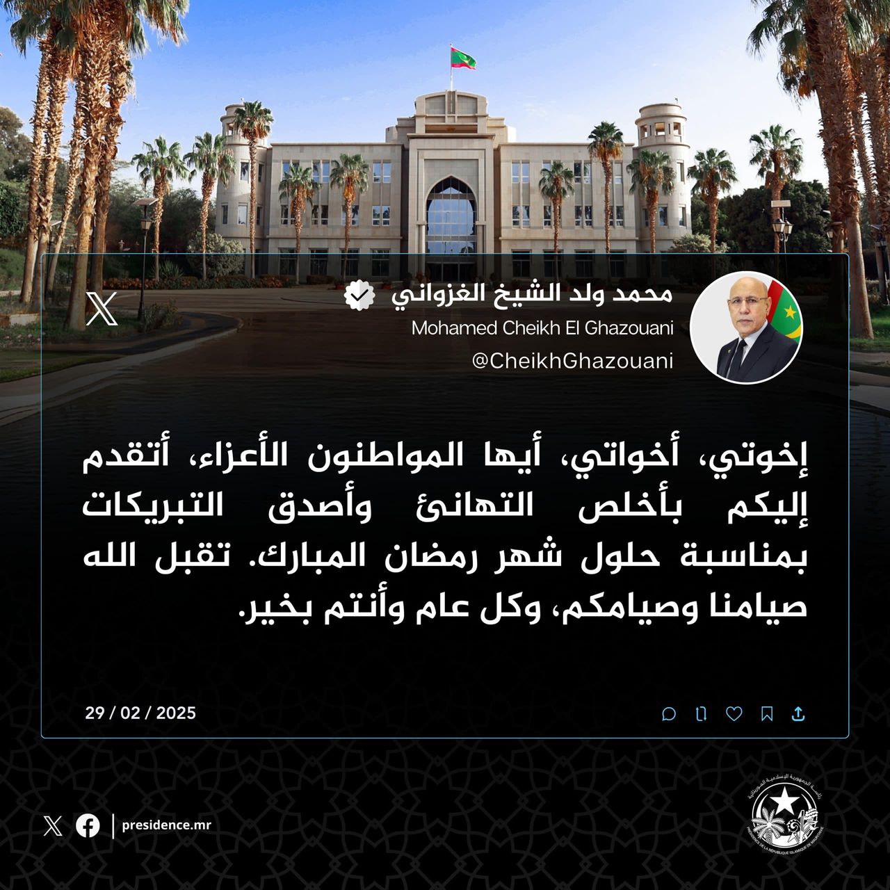 وتم الاعتماد في هذه الأوقات على الإمساكية الصادرة عن وزارة الشؤون الإسلامية والتعليم الأصلي في موريتانيا.