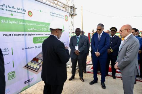 وضع الرئيس محمد ولد الشيخ الغزواني، مساء اليوم الخميس، حجر الأساس لتوسعة المستودع الرئيسي للمنتجات البترولية بالعاصمة نواكشوط، الذي تبلغ تكلفته الإجمالية 36 مليون دولار أمريكي.
