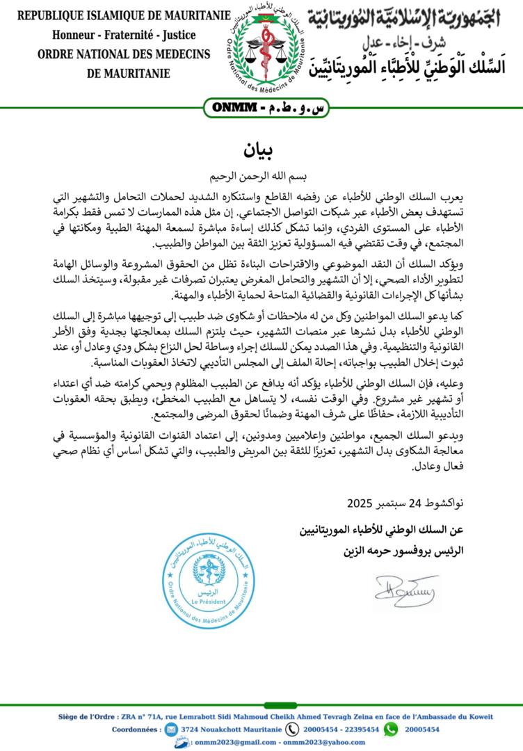 استنكر السلك الوطني للأطباء ما قال إنها "حملات تحامل وتشهير تستهدف بعض الأطباء عبر شبكات التواصل الاجتماعي" مُعربا عن رفضه الشديد لهذه الحملات.