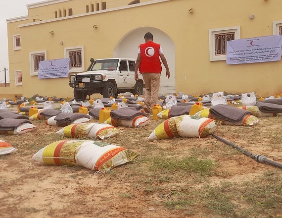 وأضاف الهلال الأحمر في إيجاز وصل الأخبار، أن السلة الغذائية للعائلة الواحدة تتكون من 25 كلغ من الأرز و5 كلغ من السكر و5 لتر من زيت الطهي، بالإضافة إلى بطانية.