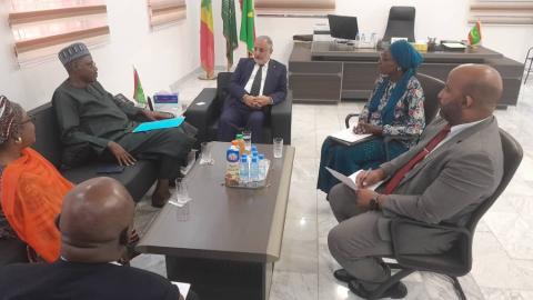 استقبل سعادة سفير الجمهورية الإسلامية الموريتانية المعتمد لدى السنغال سعادة الدكتور محمد عالي ولد سيدي محمد السيد أمينو عبد القادر القائم بالأعمال في سفارة جمهورية نجريا الاتحادية في السنغال يوم الثلاثاء الموافق ٢٧ مايو ٢٠٢٥.