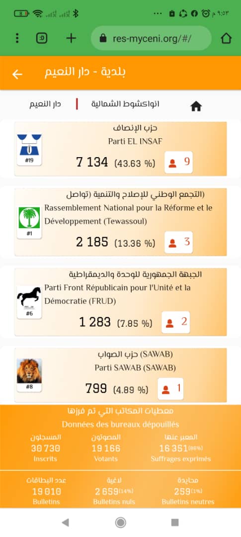 المعدن الإخباري ـ فشل رئيس حركة "إيرا" بيرام الداه أعبيد في الحصول على عضوية المجلس البلدي بدار النعيم، الذي ترشح لعضويته من حزب الصواب، حيث حمل الرقم الثاني في لائحة الحزب.