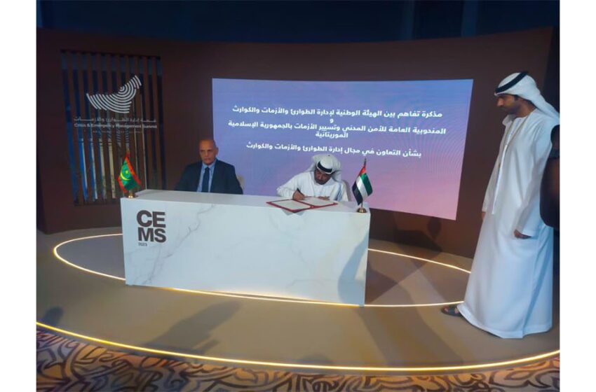 المعدن الإخباري ـ وقعت المندوبية العامة للأمن المدني وتسيير الأزمات بموريتانيا، مذكرة تفاهم مع الهيئة الوطنية لإدارة الطوارئ والأزمات والكوارث بدولة الإمارات العربية المتحدة.