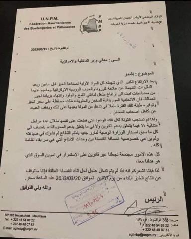المعدن الاخباري : هددت الاتحادية الموريتانية للمخابز بالتوقف عن انتاج الخبز في حالة لم تنفذ الدولة وعودها بدعم وسائل انتاج الخبز ،وقالت الاتحادية في اشعار وجهته لوزير الداخلية أن الدولة لم تستجب للوعود التي قطعت على نفسها خلال عدة مراحل متتالية خاصة فيما يتعلق بدعم الفارين والمحروقات ،هذا فضلا عن تجاهل الاتحادية في التشاور حول