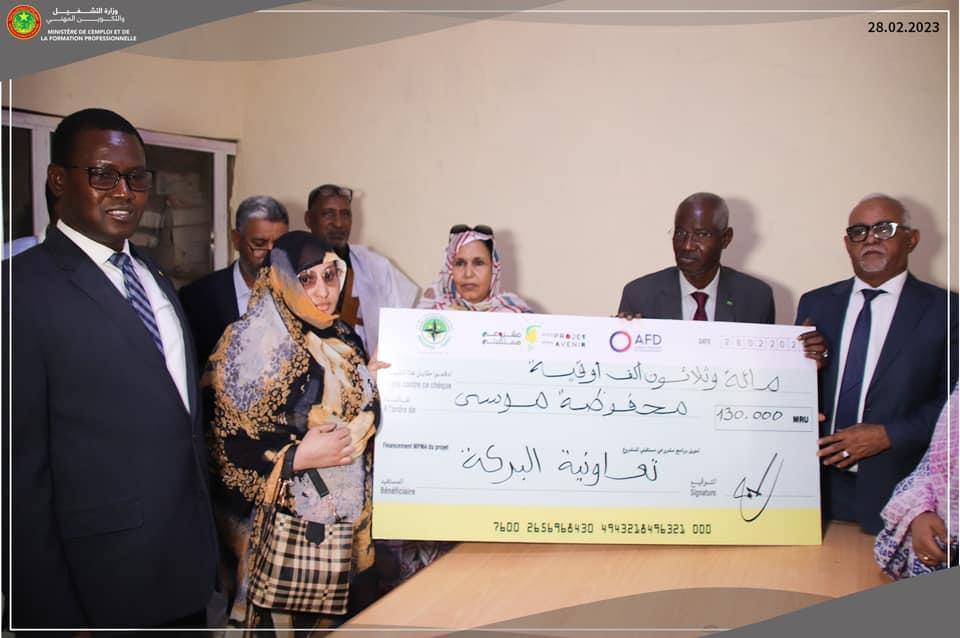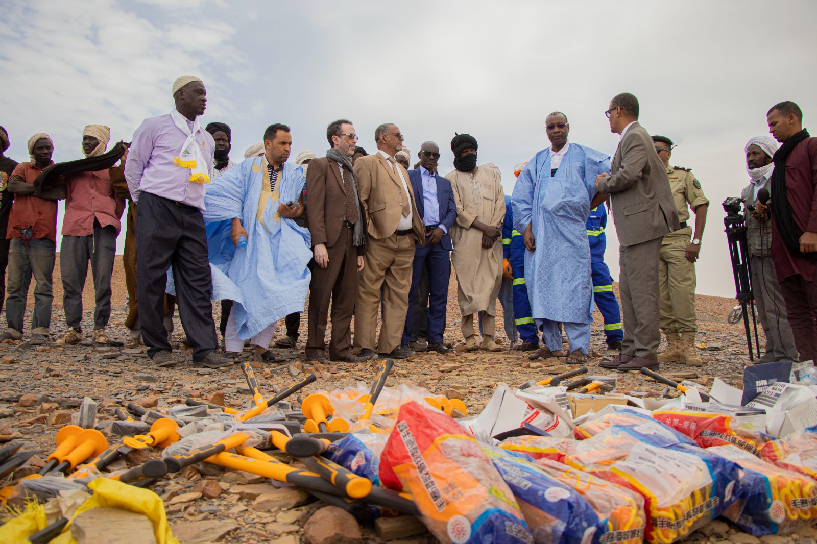 المعدن الإخباري ـ أشرف وزير الإسكان والعمران والاستصلاح الترابي السيد سيد أحمد ولد محمد يوم الإثنين بمنطقة كريير في النعمة على تسليم وسائل استخراج المواد المحلية المُقدمة من طرف مؤسسة تنفيذ الأشغال المُنجَزة بالمواد المحلية لصالح جمعية الدشرة للحجارة والأشغال العامة بالنعمة.