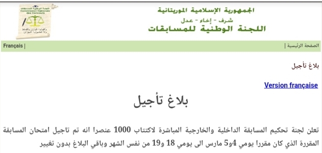 وكان من المقرر إجراء المسابقة في 4 و5 من مارس المقبل دون أن تذكر اللجنة الأسباب التي كانت وراء هذا التأجيل.