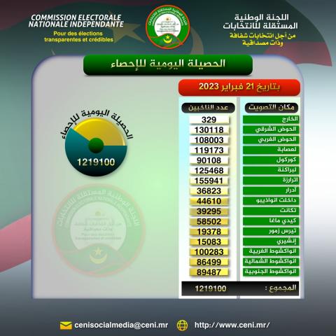المعدن الإخباري ـ أكد رئيس اللجنة الوطنية المستقلة للانتخابات (Ceni، السيد الداه ولد عبد الجليل، أنه بات بالإمكان الإطلاع على المعطيات الكاملة ذات الصلة بالإحصاء الإداري ذي الطابع الانتخابي،من خلال الرابط: