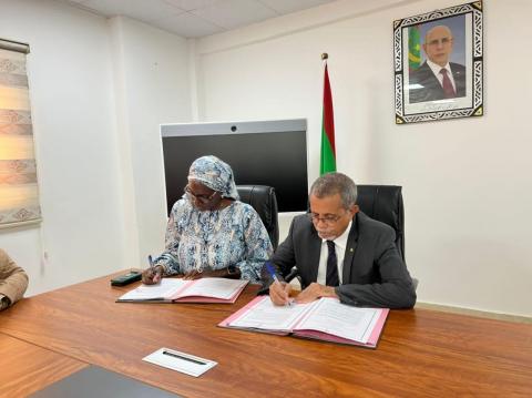 المعدن الاخباري : وقع وزير الزراعة السيد يحيى ولد أحمد الوقف، يوم أمس , بقاعة الاجتماعات بمباني الوزارة، مع الممثلة المقيمة لبرنامج الغذاء العالمي السيدة كينداي انديل صمبا، اتفاقية شراكة، لتعزيز قدرات السكان المحليين على الصمود في مجالي الأمن الغذائي والتغذية أمام مخاطر الصدمات المناخية من خلال إقامة وحدات إنتاجية.