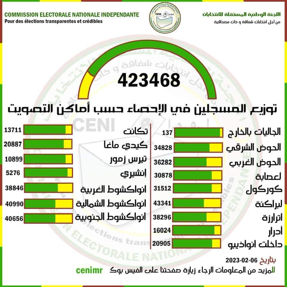 المعدن الإخباري ـ أعلنت اللجنة الوطنية المستقلة للانتخابات عن الحصيلة الأولية لعمليات الإحصاء الإداري ذي الطابع الانتخابي حيث بلغت 423.468 من المسجلين في عموم التراب الوطني خارج البلاد.