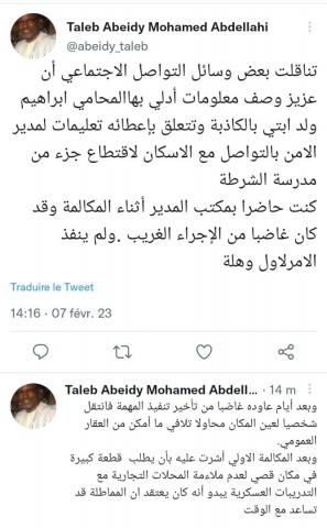 المعدن الإخباري ـ قال المدير العام المساعد للأمن الوطني السابق محمد عبد الله ولد اعبيدي الملقب ولد آده أنه كان حاضرا حينما أعطى الرئيس السابق محمد ولد عبد العزيز الأوامر لاقتطاع جزء من مدرسة الشرطة