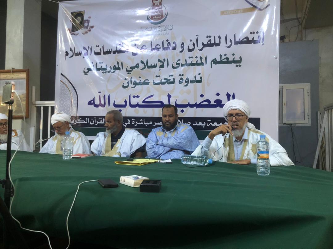 المعدن الإخباري ـ نظم المنتدى الإسلامي الموريتاني مساء الجمعة بنواكشوط ندوة فكرية وثقافية حملت شعار "الغضب لكتاب الله".