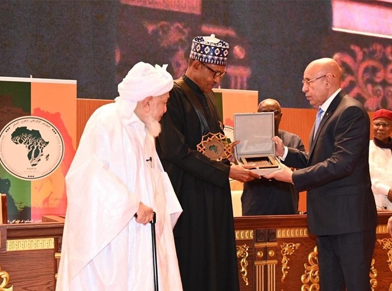المعدن الإخباري ـ كرم رئيس الجمهورية محمد ولد الشيخ الغزواني اليوم الثلاثاء في نواكشوط، محمدو بخاري، رئيس جمهورية نيجيريا الاتحادية وذلك بمنحه جائزة تعزيز السلم في إفريقيا في نسختها الأولى 2023.