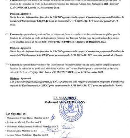 المعدن الإخباري ـ من المتوقع أن تجد المهندسة فاطمة منت حدمين، المعينة حديثا مديرة للمختبر الوطني للأشغال العمونية أمامها تركة ثقيلة من الفساد، حيث تحدثت وثائق رسمية عن قيام الشركة باستئجار 10 سيارات لمدة عام بتكلفة قدرها150 مليون اوقية قديمة، حسب ما أكده محضر موافقة صادر عن لجنة الصفقات.