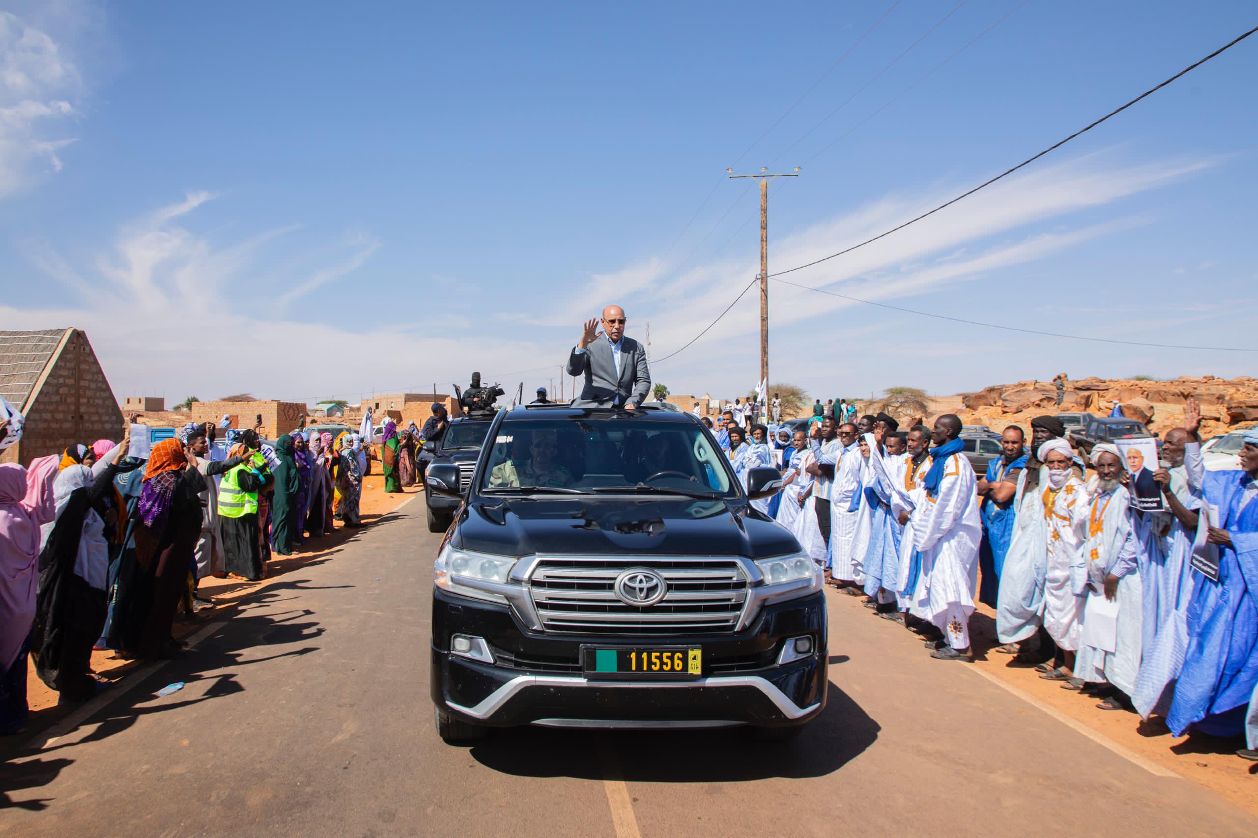 و اصطف السكان على جانبي الطريق الرابط بين مطار المدينة ومقر انطلاق الأنشطة، حاملين الأعلام الوطنية، والصور المكبرة لفخامة رئيس الجمهورية واللافتات المثمنة لهذه الزيارة، وما ستشهده من تدشينات مهمة، وكذلك الإشادة بالإنجازات التي تحققت خلال السنوات الماضية في جميع مناطق البلاد بصفة عامة، ومن مقاطعة الطينطان ومدينة العيون على وجه الخصوص