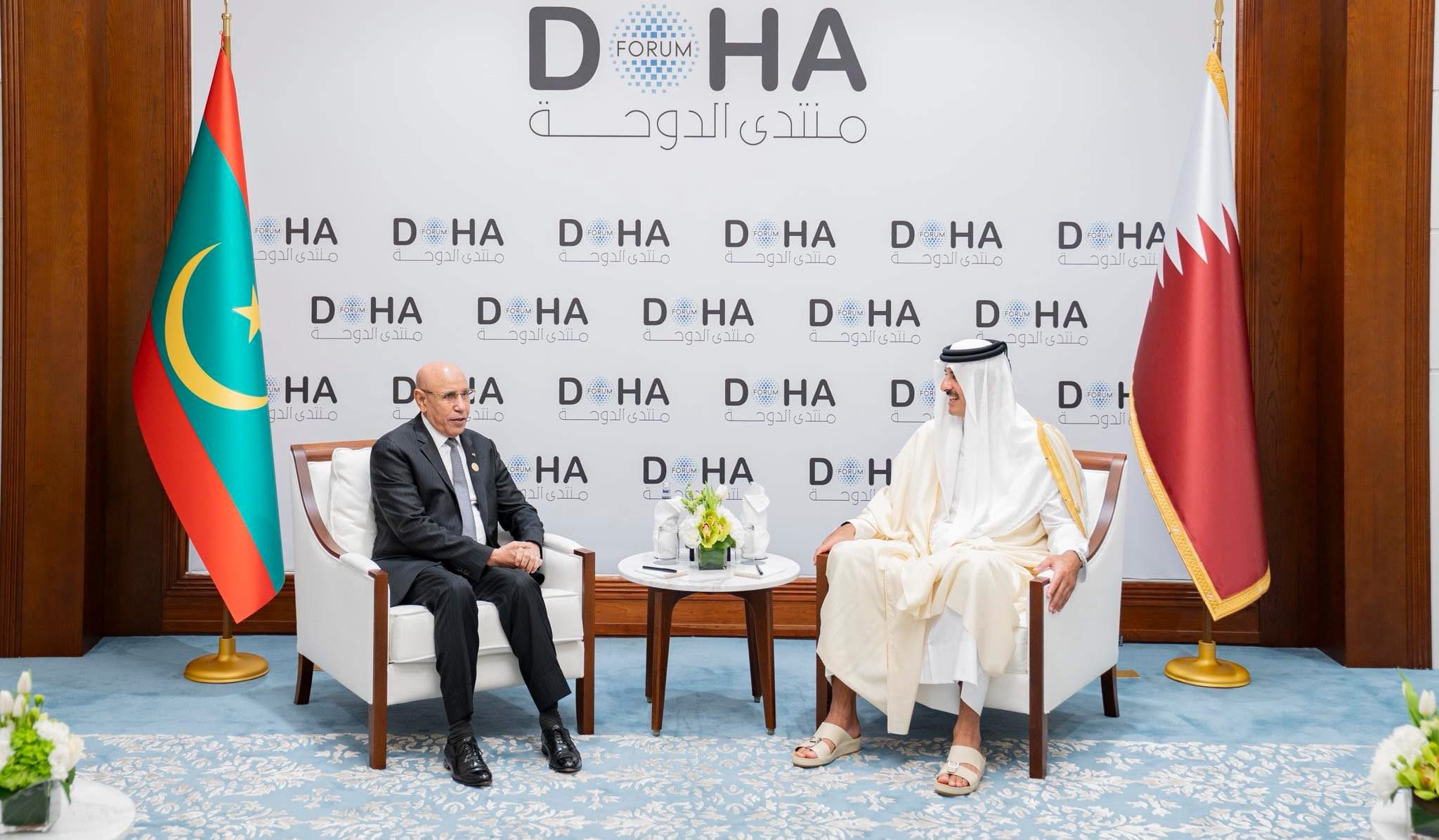 أجرى الرئيس محمد ولد الشيخ الغزواني، اليوم السبت، في الدوحة، مباحثات مع أمير قطر تميم بن حمد آل ثاني.