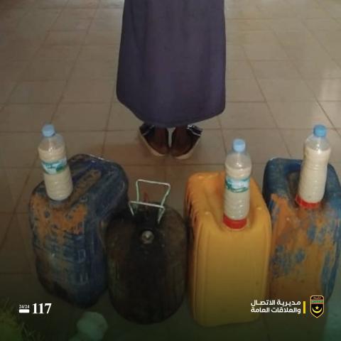 وأسفرت عملية التفتيش عن ضبط ثلاث قنينات سعة كل واحدة 20 لتراً مملوءة بالمشروب، إضافة إلى قنينة غاز تُستخدم في عملية التخمير.