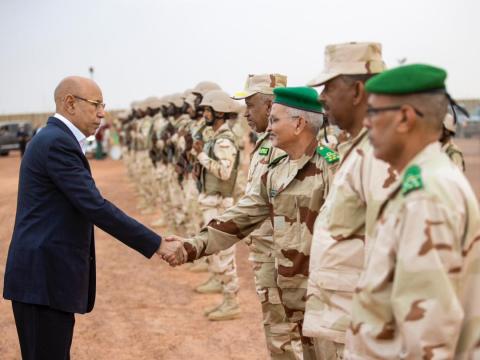 المعدن الإخباري ـ شارك فخامة رئيس الجمهورية السيد محمد ولد الشيخ الغزواني، ليلة الإثنين 19 من رمضان مجموعة من الجنود وضباط الصف والضباط المرابطين على الحدود مع جمهورية مالي الشقيقة، إفطارهم الرمضاني في سابقة هي الأولى من نوعها في تاريخ البلاد.
