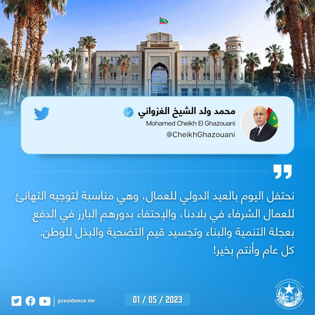 Le président Mohamed Ould Cheikh El-Ghazwani a adressé un message de félicitation aux travailleurs mauritaniens à l'occasion de la fête internationale du travail, correspondant au 1er mai.