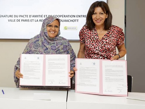 Essahraa - La présidente de la Région de Nouakchott Mme Fatimetou Mint Abdel Malick et la maire de Paris Anne Hidalgo ont cosigné ce mercredi, une convention de partenariat et de coopération couvrant de nombreux domaines de développement.