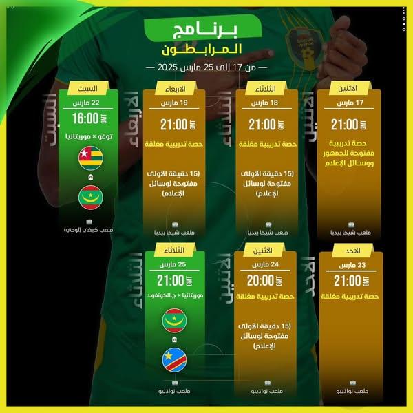 دخل المنتخب الموريتاني " المرابطون " في معسكر مغلق بالعاصمة نواكشوط تحضيرا للجولتين الخامسة والسادسة من تصفيات إفريقيا المؤهلة إلى نهائيات كأس العالم 2026 .
