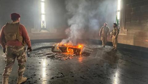 وأظهرت لقطات مصورة تم تداولها على منصات التواصل الاجتماعي مشاهد دخول مقاتلي المعارضة المسلحة إلى ضريح الرئيس السوري الراحل حافظ الأسد والوقوف إلى جانب قبره.