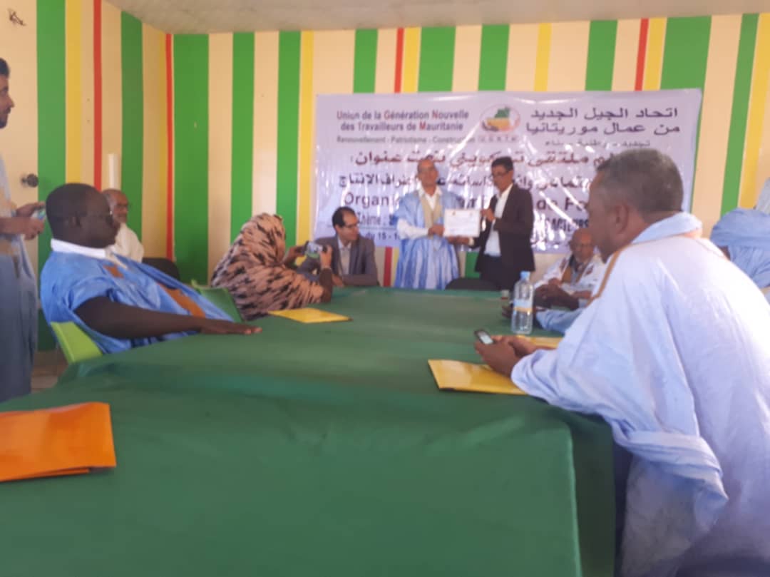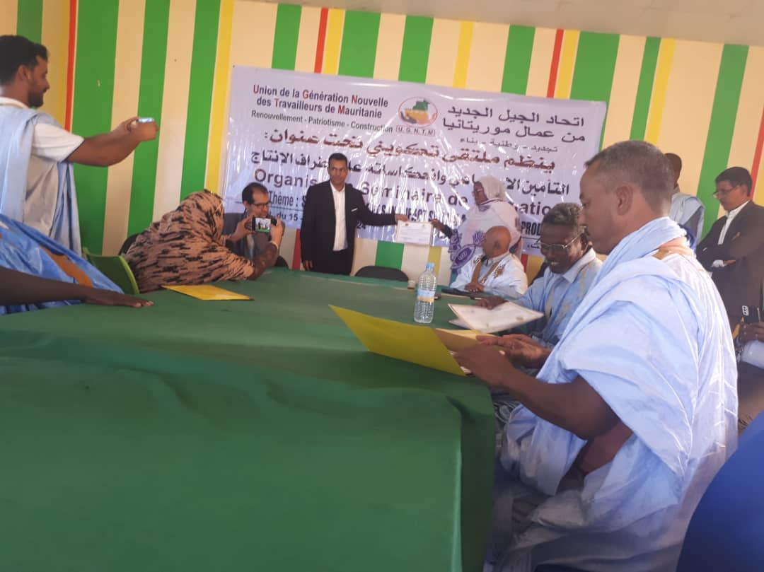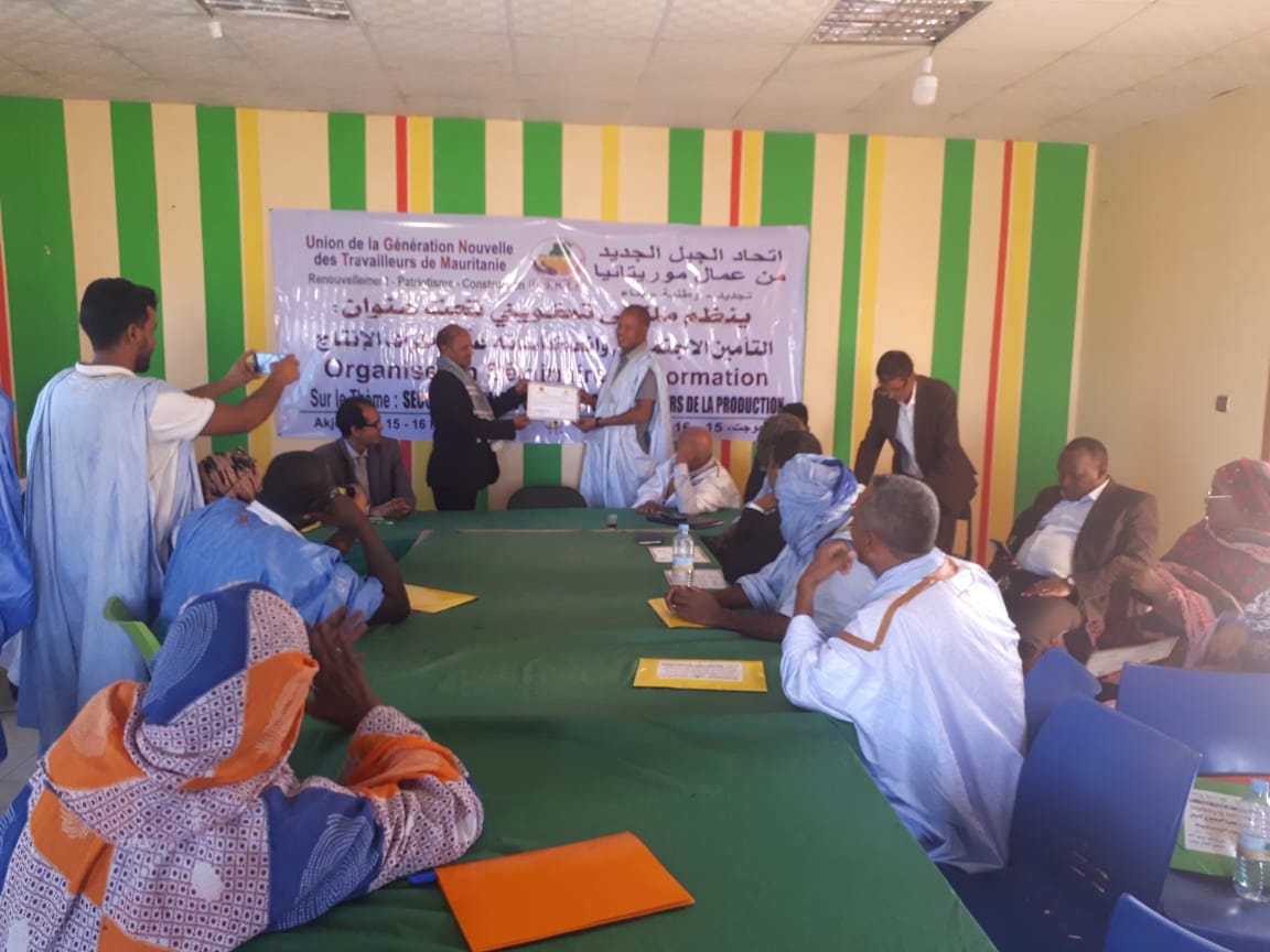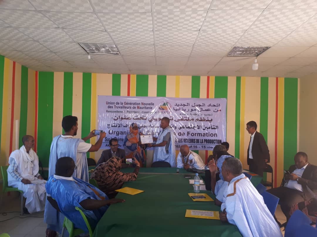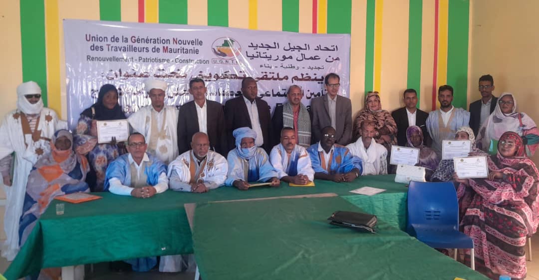 اختتم اتحاد الجيل الجديد من عمال موريتانيا، زوال اليوم الجمعة، في أكجوجت عاصمة ولاية إينشري، ورشة تكوينية لصالح 30 من أطره تحت عنوان " التأمين الاجتماعي وانعكاساته على أطراف الإنتاج".